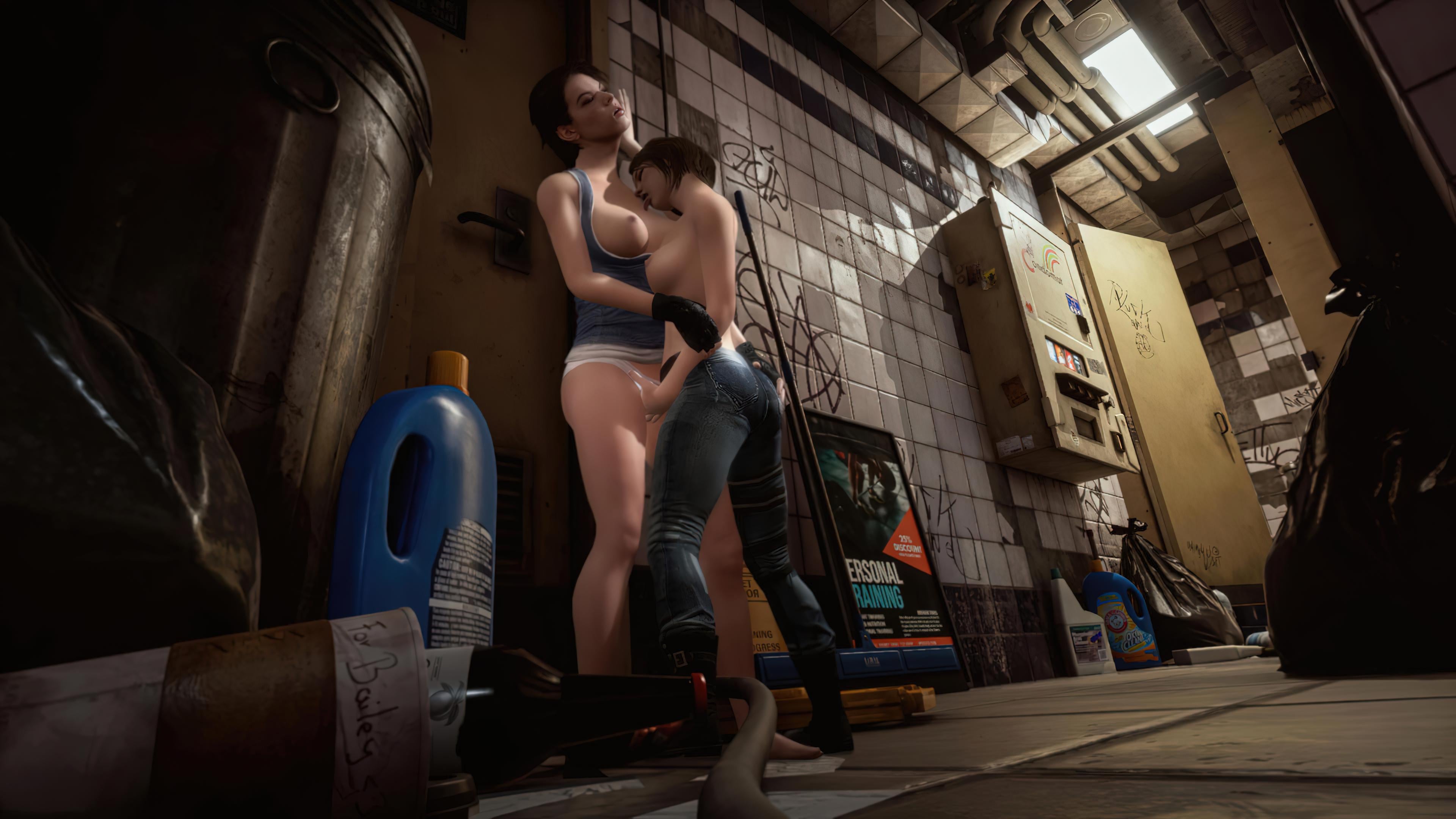 أثناء الاختباء من الزومبي في غرفة تخزين ، سمحت جيل لبرونت سروال سمراء الساخنة بإغراءها بسبب عدم وجود اللعنة. جيل فالنتين (راستيفان) (الشر المقيم)